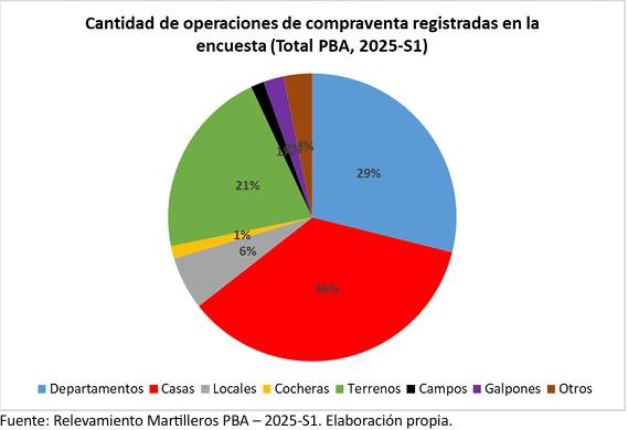 El 53% de las operaciones de compraventa que se realizaron en Trenque Lauquen durante el primer semestre de 2025 corresponden a casas (39%) y departamentos (14%), un registro que está por debajo del promedio provincial, donde en el mismo período asciende a 65% las operaciones residenciales (36% casas y 29% departamentos), según un relevamiento elaborado y difundido en estos días por el Colegio de Martilleros y Corredores Públicos de la Provincia de Buenos Aires (Martilleros BA) junto al Instituto de Política y Gobierno (IPG) de la Universidad Nacional del Noroeste de la Provincia de Buenos Aires (UNNOBA).