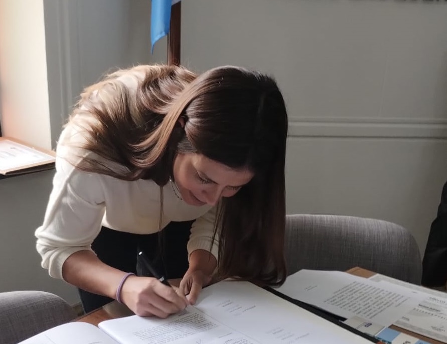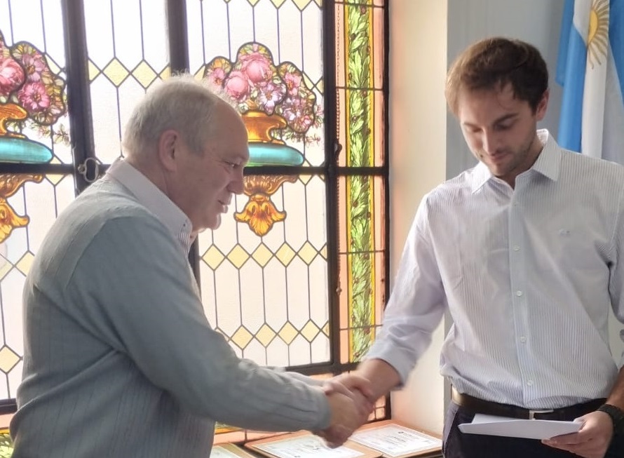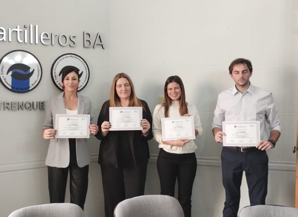 Nuestro Presidente, Carlos Prono; el Secretario General, Marcelo Moita; el Tesorero, Manuel Mestre, acompañados por un colega jubilado, Alberto Ramis, dieron, en nombre del Colegio y de todos los matriculados, la bienvenida a cuatro nuevos colegiados: María Vanesa Sánchez, de Pehuajó; Dolores Solá, de Daireaux; Mariana Quiroga, de Gral. Villegas; y Martín Humaran, Trenque Lauquen, quienes prestaron juramento y compartieron su alegría de cara a la etapa que ahora comienzan, para la que les deseamos el mayor de los éxitos.